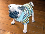 パグの男の子です。お父さんはじんぱちでお母さんはキョロです。体は小さいけれどとっても元気な遊ぶの大好き、人間大好きっていう子です。とってもかっこいい名前をお兄ちゃんがつけてくれました。お話をさせていただいて、明るくてあたたかいご家族というのが伝わってきましたので、安心しておまかせできました。これからもどうぞよろしくお願い致します。